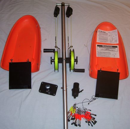 I'm selling two almost new Big Jon otter boats with the dual planer rigger mast. The mast has the normal mounting bracket and also has a seat pedestal adapter mount. I'm also selling 32 releases (26 of them are the hi-vis (22 orange, 4 yellow) Laurvick releases and there are 6 standard Laurvick releases). The paper work is included that came with the boards and mast. I have used them only a couple times with good luck, but I prefer the in-line boards thats just my opinion. Would like to sell the whole package shipped for $375, but will take other offers. Everything in the pictures you will receive. I can accept paypal payment also.