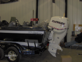 | Better get that motor picked up on the transom. From the pics, it's sitting down too low. It should be at least on the 2nd or 3rd mounting hole, to start with. E-mail me if you want. If I'm seeing the pics right, it's going to be dragging in the water. |