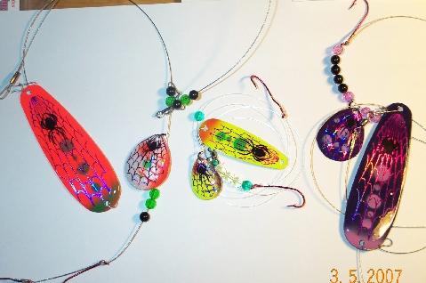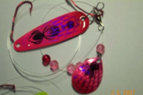 | Be sure to check out the stuff Tommy is doing for us, here at Eyeliminator.com, kick ass spinners with spoon attractors to match. There going like wild fire over here in Michigan,with availability in other areas, soon. :) Now available in the "Pro Series" mini eye, with mono leaders, along with the original magnum version, with nylostrand leaders. Some pretty cool rigs!!! | |||