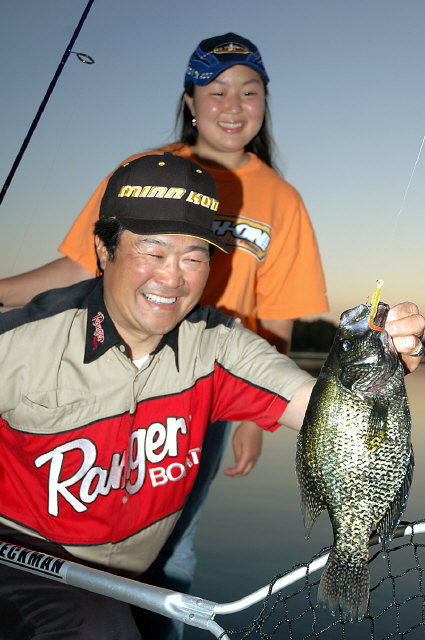 Pro angler Ted Takasaki lands a nice crappie for his daughter, Kristi. By following the suggestions in this story, you can help create smiles when you take youngsters out for a fun fishing adventure.