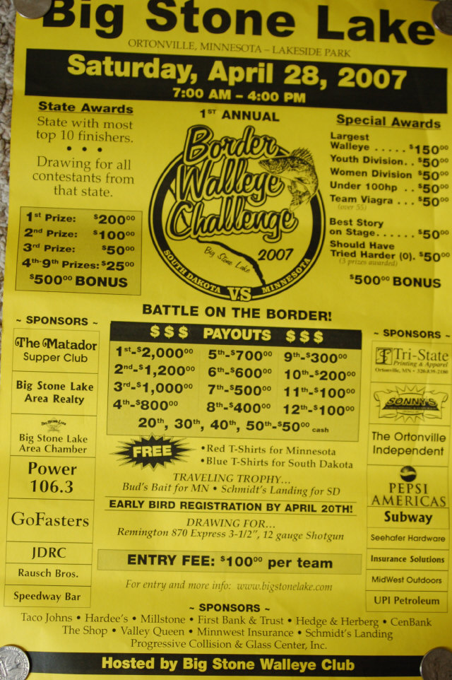 Walleye Fishing -> General Discussion -> 'Border Challenge' Big Stone Walleye Tournament; APRIL 28
