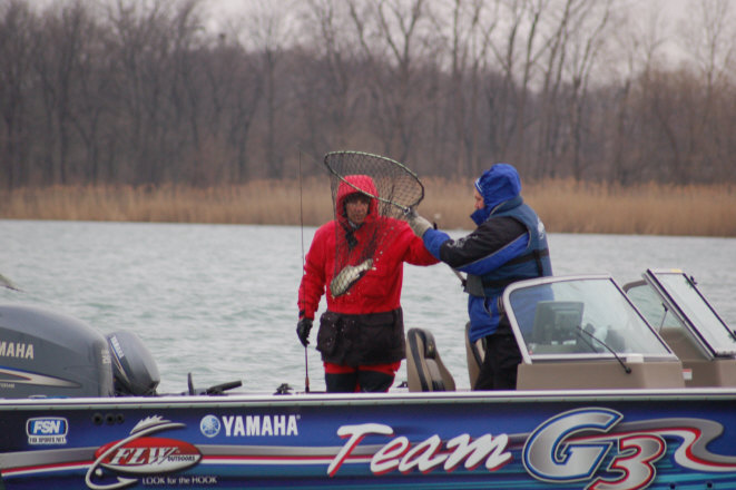 Location: Rhinelander | Wind and cold limited the field to the River today, with waves forecast to build up to 12' on the big water. Many of the Pros had prepared for that possibility, as this storm was forecast as early as last week to bring wind, rain, and some snow to the area. The river was relatively calm this morning, but the bite seemed slow. Lund/Mercury Pro Ron Seelhoff had a couple fish, G3/Yamaha Pro Jerry Ruffalo hadn't kept one yet, and only a couple fish hit the net while we were on the water. Most of the boats indicated they had yet to livewell a fish but we were off the water by 8:30 Eastern. There's plenty of day left. Thanks to Team G3 for getting us out on the water this morning! The weigh in will begin this afternoon at 3 PM Eastern, so stay with WalleyeFIRST for the best walleye tournament coverage on the web! Attachments ---------------- DSC_0040.JPG (53KB - 78 downloads) DSC_0045.JPG (66KB - 73 downloads) DSC_0068.JPG (69KB - 75 downloads) DSC_0031.JPG (34KB - 77 downloads) DSC_0063.JPG (55KB - 75 downloads) DSC_0085.JPG (56KB - 76 downloads) | ||