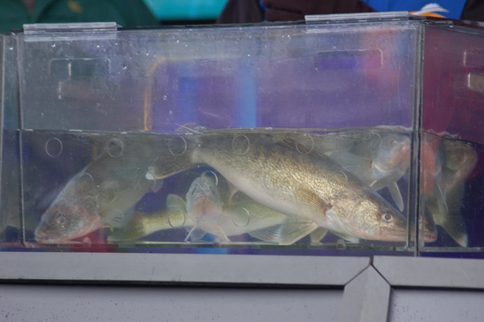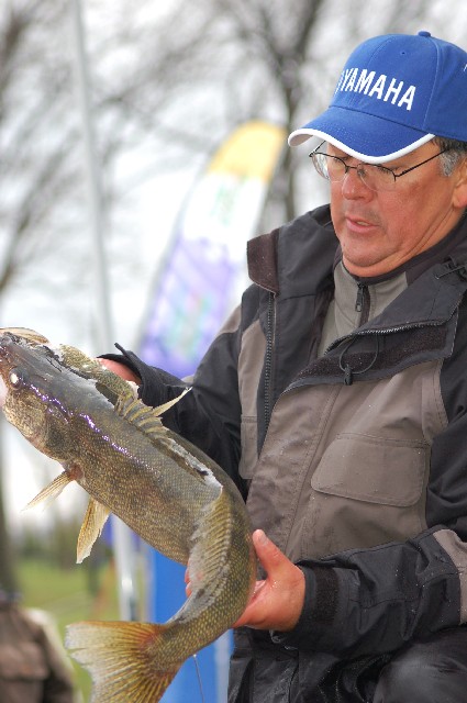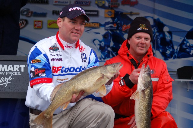Location: Rhinelander | The weights today were definitely down for many of the FLW Pros. It seems most headed out on the big water only to find it so muddy one couldn't see a few inches under the surface. Some of the Pros didn't wet a line until almost noon. The long trip out to the bay followed by exploration looking for a clear line/mud line absorbed too much time for some while others bailed and headed to the river for a limit. Mark Meravy was fishing the river today. He's taking a 5# plus advantage into day three. The wind steadily climbed to 25 MPH during the weigh in, waiting just long enough to kick up to allow everyone to get off the water safely. Day Three will be interesting; if the winds stay up and the big water is out of bounds, limits will again be common but big fish not so. There's plenty of room for movement into and out of the top ten at this point. If the big water settles down, one bag of the big fish so common during prefish could launch a team now seemingly out of the running into the top ten. Stay with WalleyeFIRST tomorrow morning. We will be announcing what waters are open to fish as soon as Sonny reynolds, FLW Tournament Director, makes the call. Attachments ---------------- Mark Meravy.jpg (69KB - 97 downloads) Dustin Kjelden.jpg (84KB - 113 downloads) Lining up to Weigh In.jpg (74KB - 121 downloads) FLW Weigh In Site.jpg (97KB - 105 downloads) DSC_0106.JPG (59KB - 109 downloads) | ||