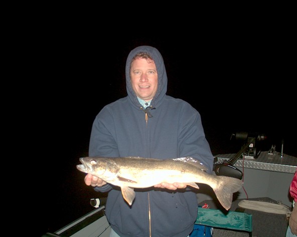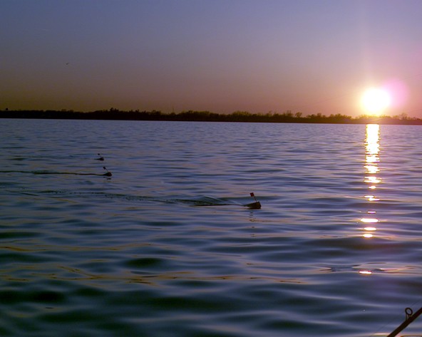 Location: Essexville, MI./Saginaw Bay. | After what seemed like a life time of waiting this year, the conditions finally got right tonight. Well, most of them anyway. The Saginaw Bays water clarity was still what I'd consider on the stained side, with maybe 2 feet visibility looking at the #18's Rapala's swimming along side the boat. But it didn't take long late this afternoon about an hour before dark and only 1 hour after we launched that the first strike yanked the middle board out of place. But the fish quickly got off and was gone.