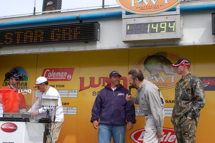 Location: Rhinelander | Strong NE winds whipped Winnebago into nearly unfishable condition today, and blew many of the Pros completely off their A plan. Limits were not uncommon, but the weights were way off from the last two days of pre-fishing. Scott Fairbairn holds first place with a 14.94# Day One basket. Luke Leanna is just behind Mr. Fairbairn with 14.37#. Only about 1 pound separates 20th from 10th, and less than 2 pounds separates 20th from 3rd. At this point, it's a shootout if the bigger fish go tomorrow. The weather is forecast to be flat mean tomorrow, with winds out of the dreaded NE at 10 to 20, rain, and temperatures similar to today's. Watch tomorrow morning for an early update on conditions and the day Two morning report. I spoke with Kevin Luebke this afternoon, and he reports Nathaniel is doing well after his last treatment. Good news, indeed! Attachments ---------------- DSC_0002.JPG (97KB - 112 downloads) DSC_0025.JPG (93KB - 115 downloads) DSC_0037.JPG (80KB - 103 downloads) DSC_0116.JPG (64KB - 111 downloads) DSC_0088.JPG (50KB - 103 downloads) | ||