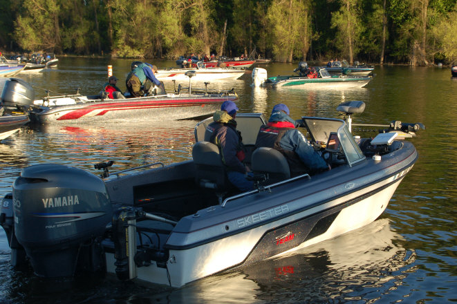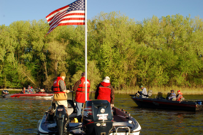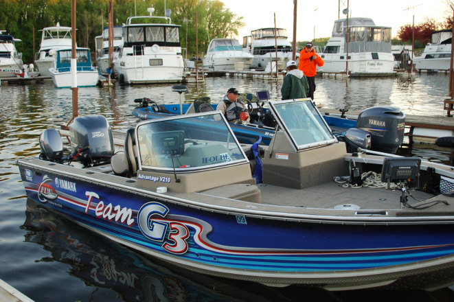 Location: Rhinelander | The Pros launched under perfect weather conditions this morning; 50 degrees and light winds under clear skies. The word this morning was an improving bite, and with stable weather forecast for the entire event, there should be some impressive weights brought to the stage.
