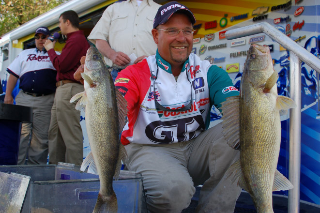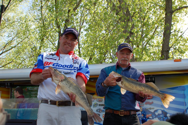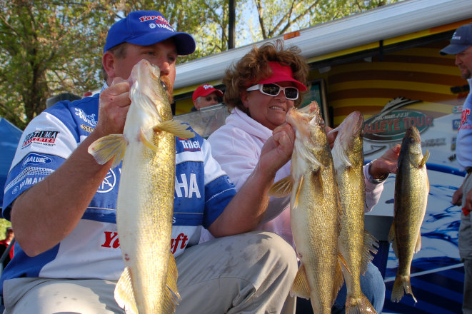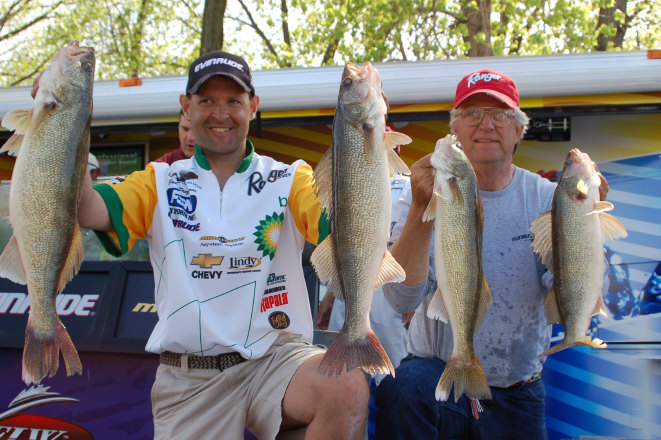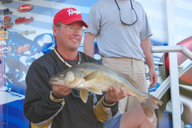 Location: Rhinelander | The fish are moving fast right now according to many of the Pros, so the 'run and gun' was a portion of many Day One game plans. Most of the better limits coming to the stage were comprised of Saugers, with at least one kicker 'eye. General consensus is that the REALLY Big Walleye bite will turn on sometime during the next couple days. A few limits of big 'eyes could change the leader board dramatically, tumbling top ten and rocketing others from in the middle to the top.