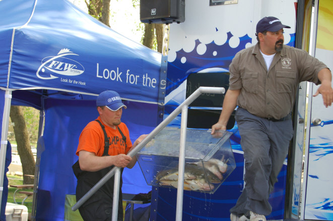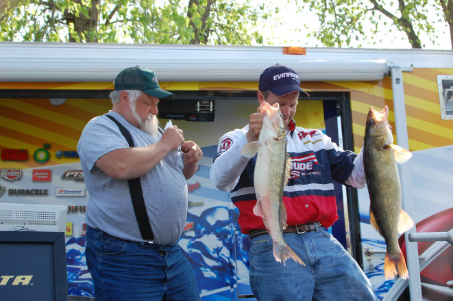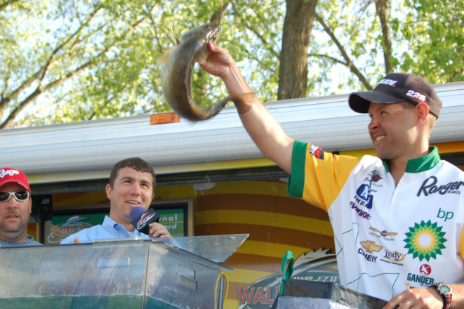 Location: Rhinelander | The weather didn't effect the fish much according to some Pros, but the wind blowing up current seemed to be a problem for others. Nate Provost got his fish and held third place while Jason Przekurat struggled to keep his pinned up. Jason lost three big fish during the day, but said he feels the fish will be there tomorrow and he'll be back into them.