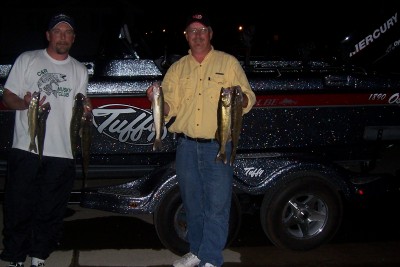 Member Posts: 120 Location: Appleton, WI | Shep took me out tonight and showed me how to crawler harness walleyes (yup, I'm an idiot to your ways, for I have been a musky fisherman for 10+ years. put me on a damed up river in October with jigs and thundersticks, I'll teach you something). Here are lessons learned from tonight (in no particular order): 1) The people I know kick butt. 2) Lori is the most patient wife in the world for letting me come home late twice this week. 3) If you fish with Shep, you'd best bring a big cooler with you. 4) tie your crawler harnesses with fluorocarbon! 5) I got to ask shep again about those color combos (although, those smiley blades turned on at the end!). 6)Shep's Tuffy boat kicks BUTT! I want to be involved in building them! Attachments ---------------- studentteacherandsweetboat.jpg (40KB - 87 downloads) Sheptakingthefish.jpg (153KB - 88 downloads) Sheponthekicker.jpg (103KB - 86 downloads) | ||