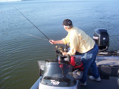 Member Posts: 3899 | What a great evening to be out on Green Bay. Just a bit of a breeze, and the sunset was great. Fishing was good. Got on the water around 5, and had our first fish in the net by 5:30. At one point we got on a herd of goats, and had 4 of the 6 rods loaded up with them! hehehe We ended up keeping 8 bretween 16 and 19, put a couple back, and missed several. The fish were willing, and we had a blast. Thanks for sharing the boat with me, Nightmare. | ||