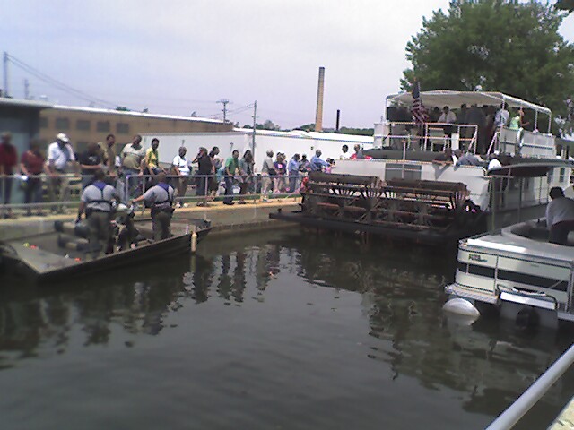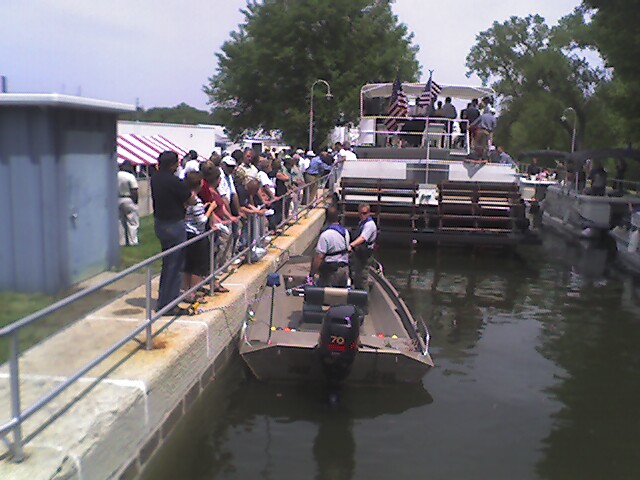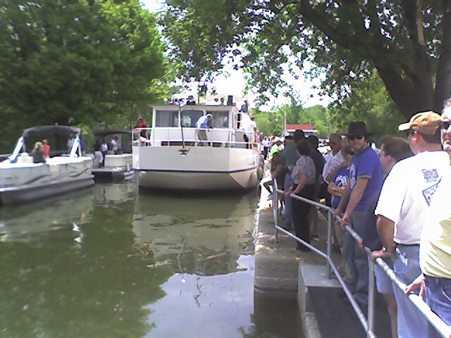There was a comical situation when one boater reached over to another boater to grab a camera and take a picture and he fell in the lock. But overall it was peacefull. The organizers of the event (can't remember her name) said we have a serious problem and they really want to sit down with all the groups to discuss this further, including the fishermen, scientists and others.