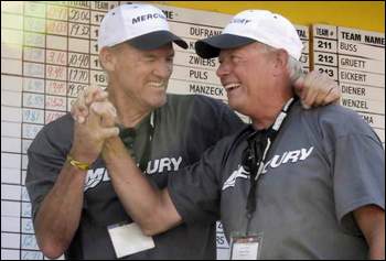 It was fun watching you in the boat prior to take off Sunday morning. How many times did you re-tie those jigs?! hehehe A bit nervous, but yet a quiet confidence, as you went about your business. A team well deserving of a big win, you're both great guys. And your smiles couldn't have been brighter as you read the scale!