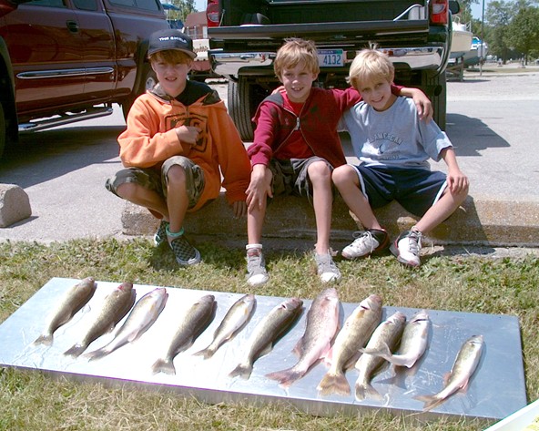 Ran a trip today with 3 adults and 3 of their kids. Right from the start they wanted to keep their fish seperate to see who was the better fishemen. I voluteered to run anything the kids wanted on their side of the boat. They did not like the spoons I had riged and wanted me to put on those pretty colored Rattle Tot's. I told them I was catching a lot of fish on spoons but would run what they wanted me to. I also put on a piece of crawler on the belly hook. Well, the kids catch was 11 and the adults were 15. But the kids fish were bigger on average.