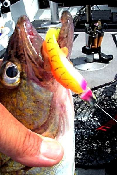 Tipping with crawler pieces, leeches and again one of my favorites the "Glup" worms in the 3 inch jigging size.