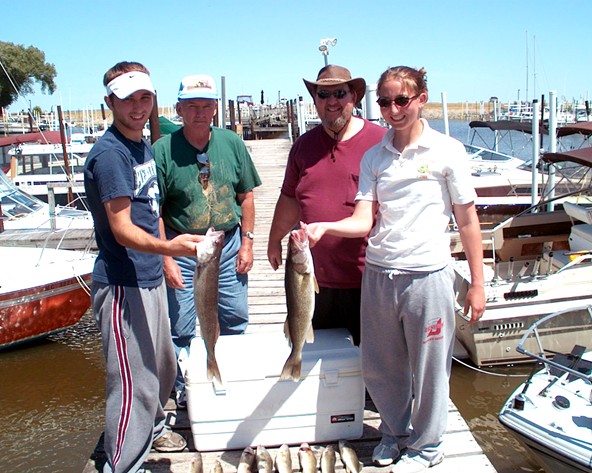 Member Posts: 2393 Location: Waukesha Wisconsin | Dan, You won't believe who was in your neck of the woods today. Yup,good old Sunshine. Looked for ya' on the water and on the radio. We saw your truck at the landing when we pulled off at 11:30 with a nice limit of 18-22 fish. It was an unbelievable day with doubles and triples and even a time when we had four on at once. Sounds like you were running a similar rig. We caught all of our fish on the Eyeliminator spoon/crawler harness rigs. Tommy Harris and the boys from Eyeliminator have made a true believer out of me with this setup. Franks had a great selection and I had to touch and feel everyone before heading home to Wisconsin. I'll be fishing on the bay again tomorrow if you want to chat on the marine radio. Awesome fishery. | ||