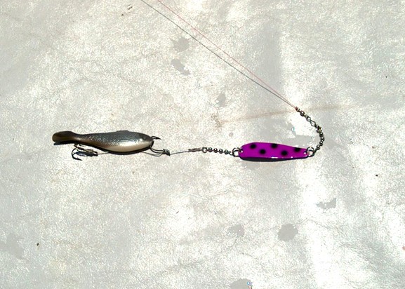 Member Posts: 2567 Location: Manitowoc, WI | The mad scientist strikes again!!!! Nice rig Captain!!! I would never have considered a bait like that on a spoon rig or spinner rig. | ||