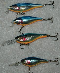 Member Posts: 23 Location: Arlington, WI | The Shad Rap that he is talking about is the old Silver Plated Series regular Shad Raps. They made brilliant silver and blue with an orange belly, brilliant gold and black, and the metallic clown. They were all discontinued and as you are aware, they re-introduced the clown pattern for Mill's Fleet Farm. They were available in #5, 7, 8, and 9. They still make the chrome blue, and orange in the RS series Shad Raps. As mentioned before, Rapala also made a chrome blue charteuse bait for Scheels. Other than color, the original silver series had a different scale pattern than the new Scheel's baits. If you check the small bait shops, you can find the discontinued colors. Unfortunately, in most cases the only ones you find are the larger #8's and 9's. Edited by bdirks 9/5/2007 11:32 AM | ||
