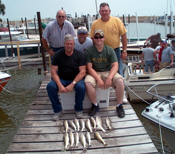 I'll start off this post by saying it seems better to always stick to my game plan. After hearing a report last night about tough fishing straight out of Hoyles yesterday morning and afternoon, I decided to head over to the 47's, start there and troll North. But I heard at the dock this morning from my charter boat neighbor, that the fishing was hot last night right out in front of Hoyles. So we started there and didn't have so much as a bump for over an hour. Pulled lines and went to my 47's numbers. Had 2 rods out and we had a fish on already. Fished for the remaining 2 hours of our 1/2 day trip, boated 20 walleyes and kept 14.
