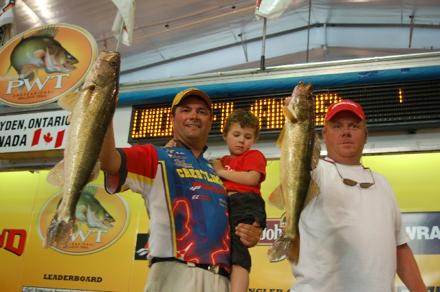 Location: Rhinelander | 1 BILL ST PETER 2 MARK BRUMBAUGH 3 MARK COURTS 4 KEITH KAVAJECZ 5 PERRY GOOD 6 BRUCE SAMSON 7 JOHN BUTTS 8 GARY PARSONS 9 RICK OLSON 10 BOB PROPST JR There's the top ten from the final day of the Wabigoon PWT Super Pro. Bill St. Peter kicked some solid tail today, bringing his second consecutive 16 pound plus basket to the scales with enough weight to pass a hard fighting Mark Brumbaugh by about 3 pounds. Mark Courts and Keith Kavajecz weighed about 13 pounds each today, holding down third and fourth with two good days and one average basket. Jigging and casting cranks were the top two presentations according to the PWT stage interviews. Wabigoon big fish were tough to figure out for many, but the big fish are there, and St. Peter and Brumbaugh proved that out. Dryden really turned out for this event, supporting the PWT and their local hero, John Butts (finishing a solid 7th with a 13 pound plus basket today, video to come soon) and a special thanks HAS to go out to the Good Folks at Indian Point Camp here on the Goon for taking excellent care of the WalleyeFIRST Crew! Attachments ---------------- St Peter WINS!.jpg (80KB - 161 downloads) Brumbaugh Second.jpg (58KB - 158 downloads) Courts Third.jpg (81KB - 147 downloads) Kavajecz Fourth.jpg (77KB - 154 downloads) John B.jpg (83KB - 154 downloads) Kavajecz Toyota Winner.jpg (97KB - 161 downloads) | ||
