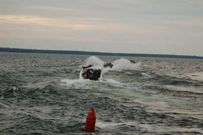 Location: Rhinelander | The skies were more friendly and the winds ideal this morning as 116 boats headed out on the Big Water of Bays De Noc. It's calmed a bit since the launch, but there is at least a breeze out there. Interesting dichotomy; the wind is both a serious enemy and a valuable friend on this water; not enough and the bite dies, too much and equipment and anglers can be severely beat up. It appears most of the field isn't traveling as far as the last event here on the Bays. Right now it's 61 degrees with North winds at 3. The wind is forecast to move to South East at 5, with possible gusts to 14. The rain missed us, and appears for the most part to be moving across the lake well to the south. Watch for the WalleyeFIRST Live Leaderboard to fire up about 4 PM Central. The image gallery and video from this morning will be up soon. Attachments ---------------- DSC_0083.JPG (65KB - 123 downloads) DSC_0057.JPG (52KB - 118 downloads) DSC_0060.JPG (61KB - 121 downloads) DSC_0064.JPG (61KB - 148 downloads) DSC_0079.JPG (104KB - 139 downloads) DSC_0092.JPG (87KB - 134 downloads) | ||